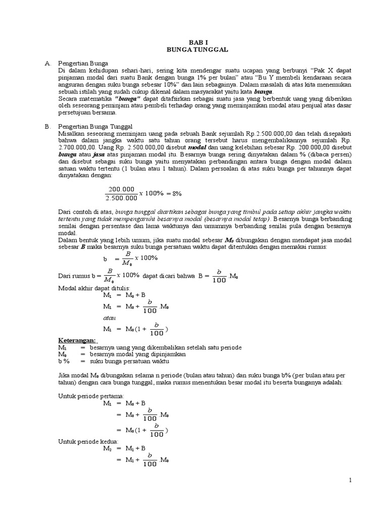 Pengertian, rumus, contoh soal, dan pembahasannya. Memiliki bunga yang tersusun majemuk. Berikut beberapa contoh soal menghitung bunga tunggal. Tentukan bunga tunggal pada kondisi seperti berikut = modal rp 5.000,00 selama 1 tahun dengan bunga tunggalnya sebesar 4%. Bunga yang diberikan juga akan sama dari awal menabung.