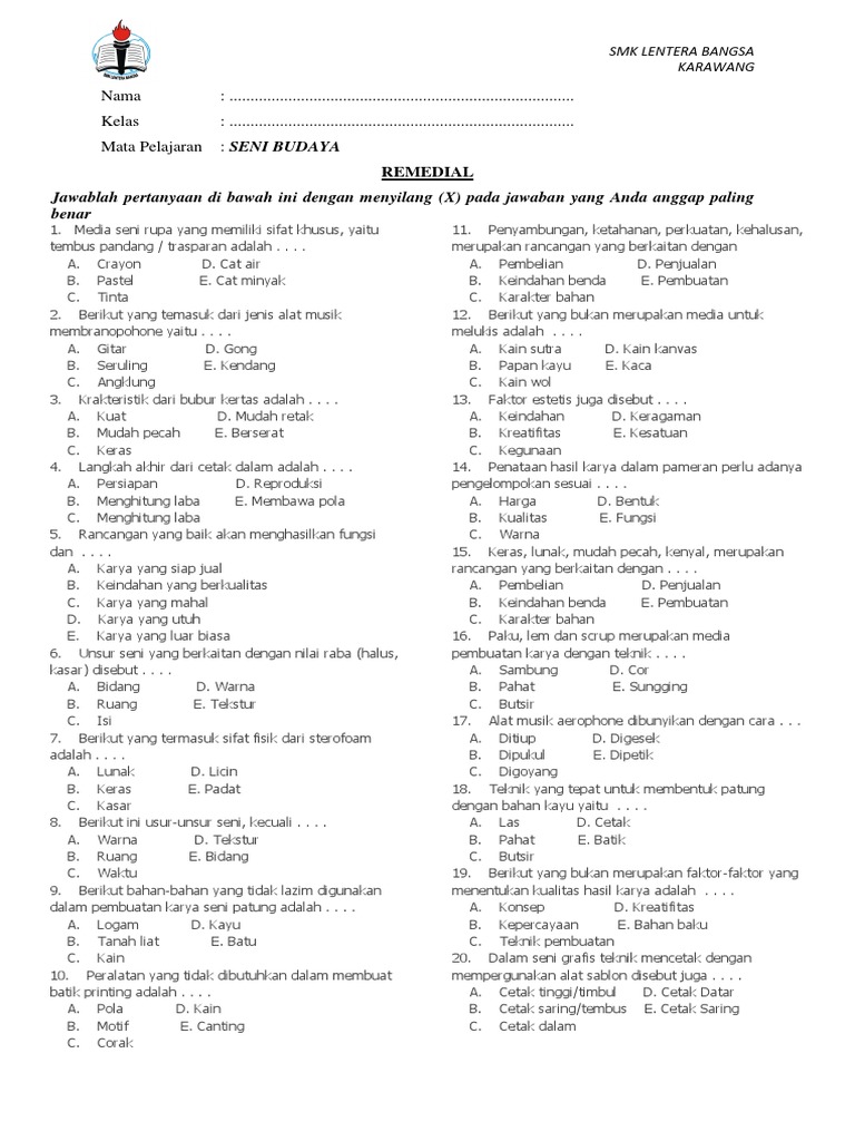 √Kumpulan 60+ Contoh Soal Pilihan Ganda Seni Budaya Kelas From searchsoal.blogspot.com