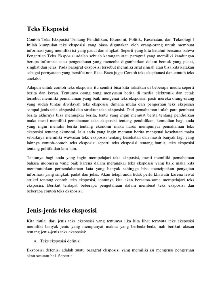 Seperti pada materi kelas xi, paparan materi eksposisi secara umum, disampaikan kembali agar mereview kembali ingatan siswa tentang apa itu eksposisi. Pengertian eksposisi eksposisi adalah satu jenis pengembangan paragraph dalam penulisan yang dimana isinya ditulis dengan tujuan untuk menjelaskan atau memberikan pengertian dengan gaya penulisan yang. Soalnya menurutku, jika demo menggunakan slideshare tampilannya jadi jelek banget. Materi teks eksposisi sudah diajarkan di kelas xi. Semoga apa yang saya bagikan kali ini dapat membantu anak didik dalam mencari referensi dan membantu anak didik dalam memahami materi pembelajaran bahasa.