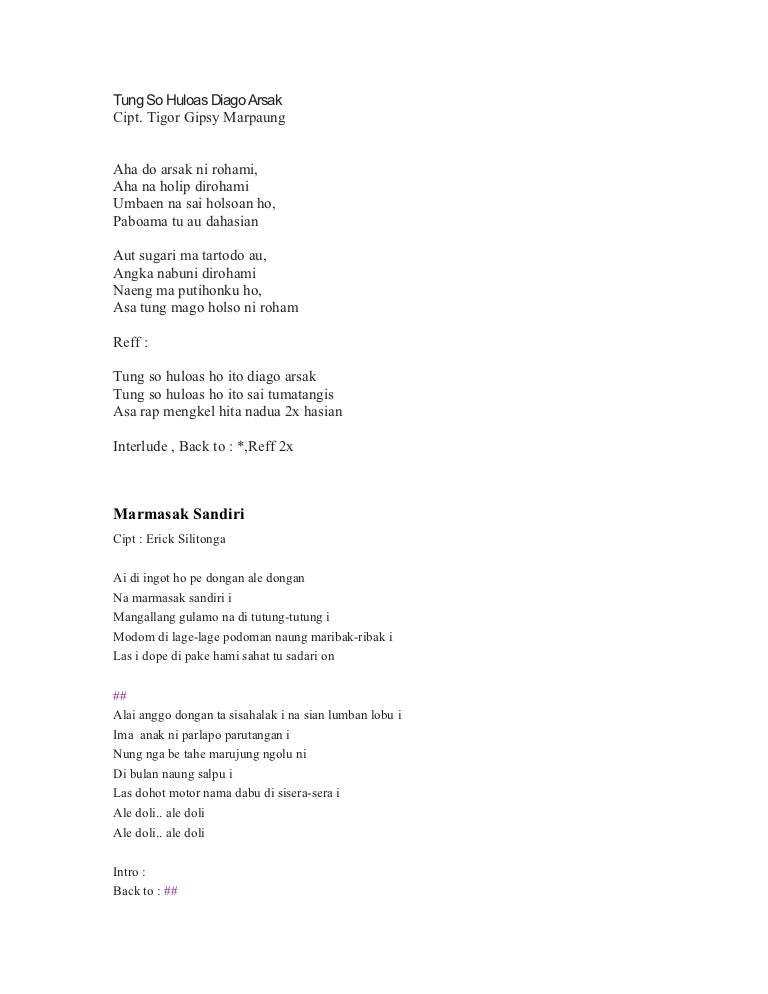 Tu dia ho laho tu si do nang ahu. Lirik rap sai nimmu tu au. Lagu ini termasuk lagu kesukaan saya. Rap, sai nimmu tu au tu dia ho lao, tu si do nang au rap, sai nimmu tu au dung tundalanmu, lupa do ho. Unang sai gabusi au a d a d a.