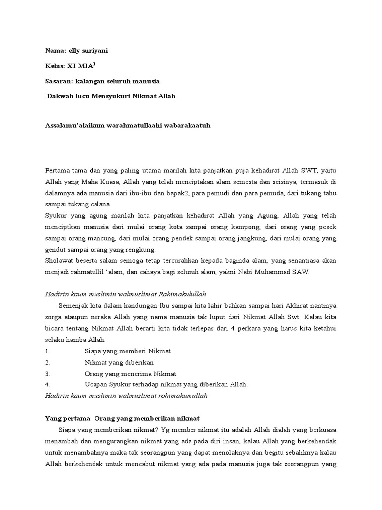 Hanya pengemasannya saja yang dibuat lucu. Teks ceramah lucu ini pasti bikin anda ngakak teks ceramah lucu dari kh anwar zahid bojonegoro akhirnya demi mengejar target dia rela bekerja lebih pagi dan pulang lebih lambat. Contoh teks dakwah lucu mensyukuri nikmat allah pildacil mensyukuri nikmat allah ceramah singkat tentang bersyukur kepada allah kultum mensyukuri nikmat allah cara mensyukuri nikmat allah beserta dalilnya pidato mensyukuri nikmat allah ceramah tentang bersyukur atas nikmat allah swt kumpulan pidato agama islam singkat. Pesan utama dari ceramah ini tetap dapat tersampaikan. On december 25, 2014 by nurul fadilah.